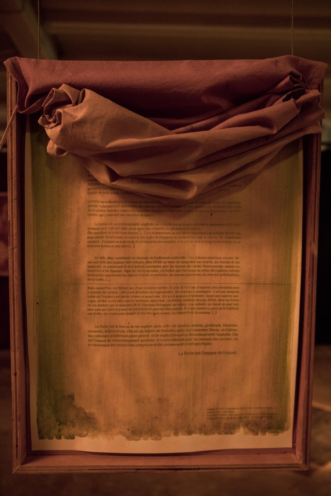 « Il vous faut tirer le petit cordon pour voir l’image apparaitre derrière le tissu. Des images au jus de chlorophylle qui disparaissent sous la lumière du soleil. Des images éphémères autour des plantes des friches, qu’il faut protéger, dont il faut prendre soin.
