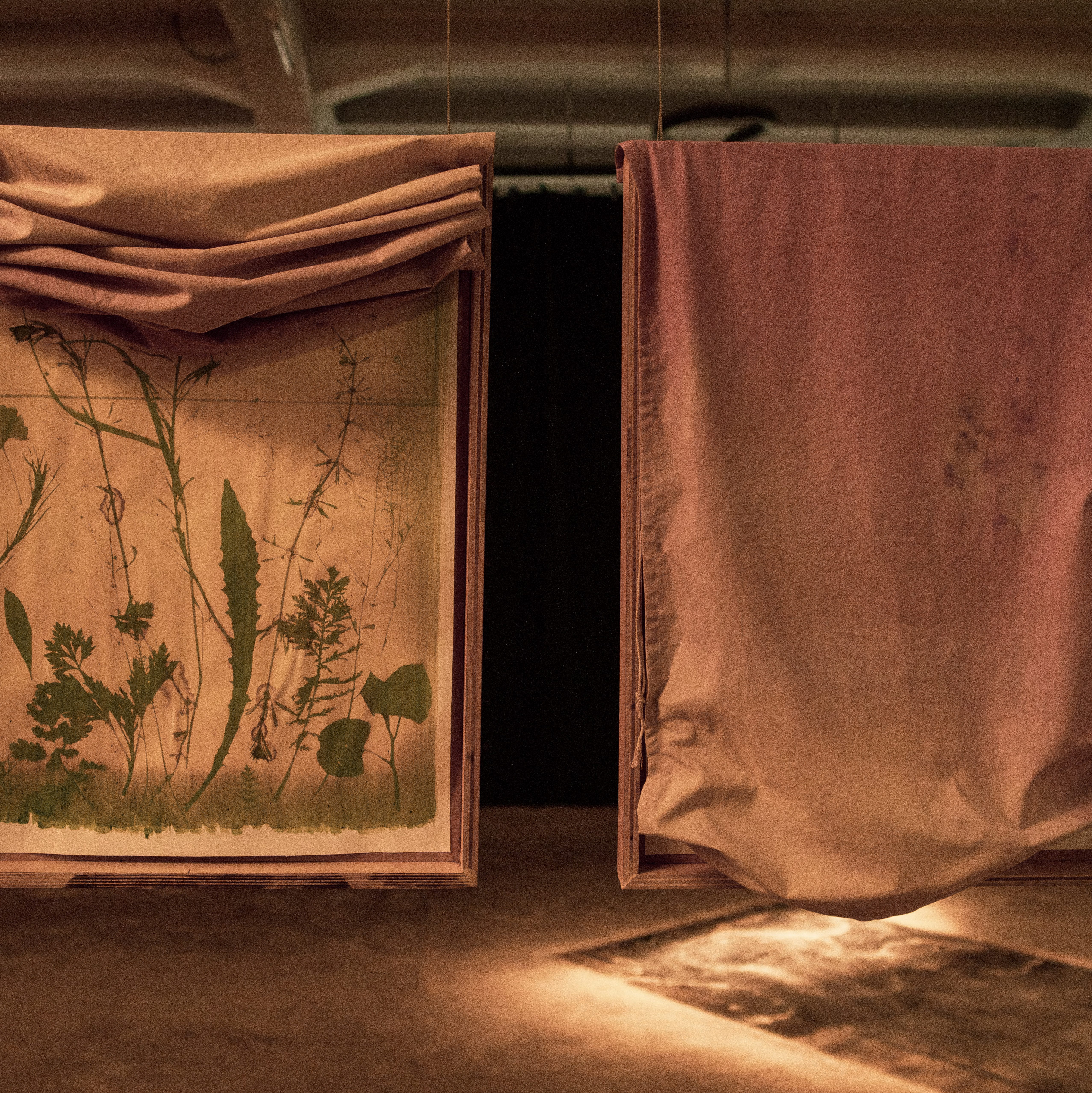 A travers des images éphémères au jus de chlorophylle, les adolescent.es ont choisi de recomposer la faune, imaginée ou non, à partir de leurs récoltes de plantes, devenant ainsi leur palette de formes. Des images éphèmères dont il faut prendre soin pour les garder le plus longtemps possible, protégées par des tissus teints par leur soin avec les plantes du coin.