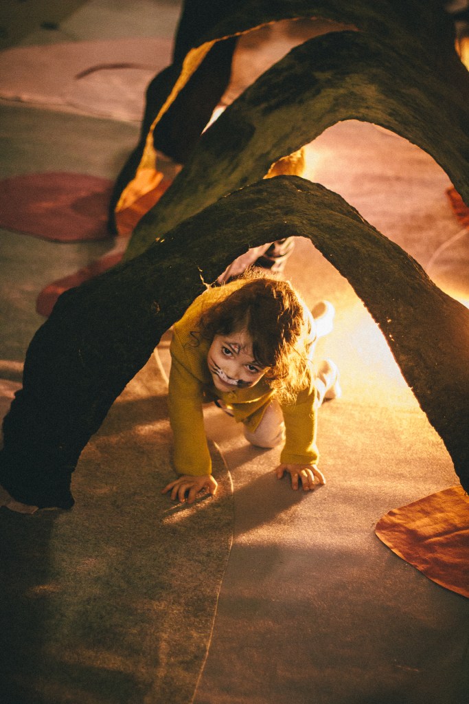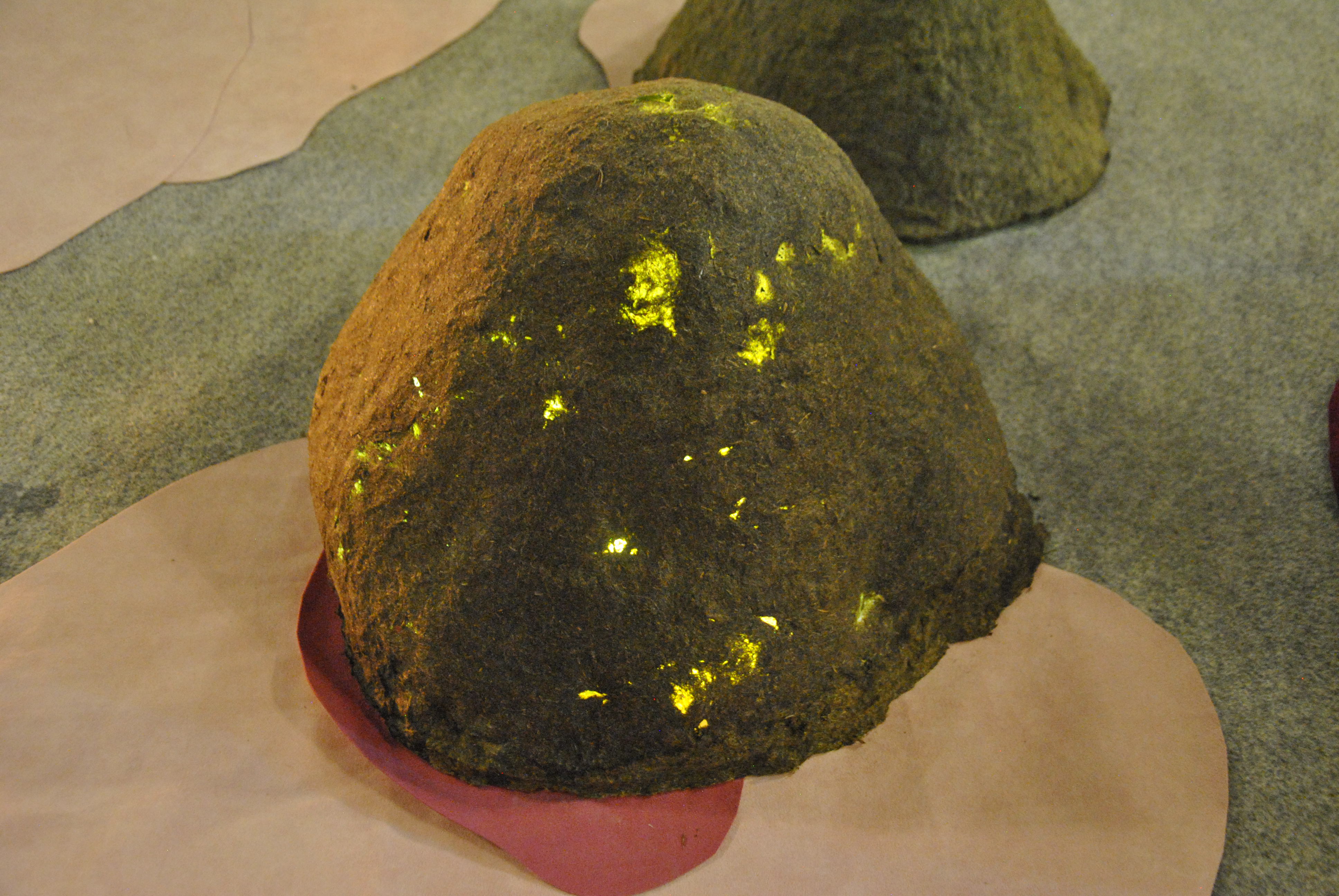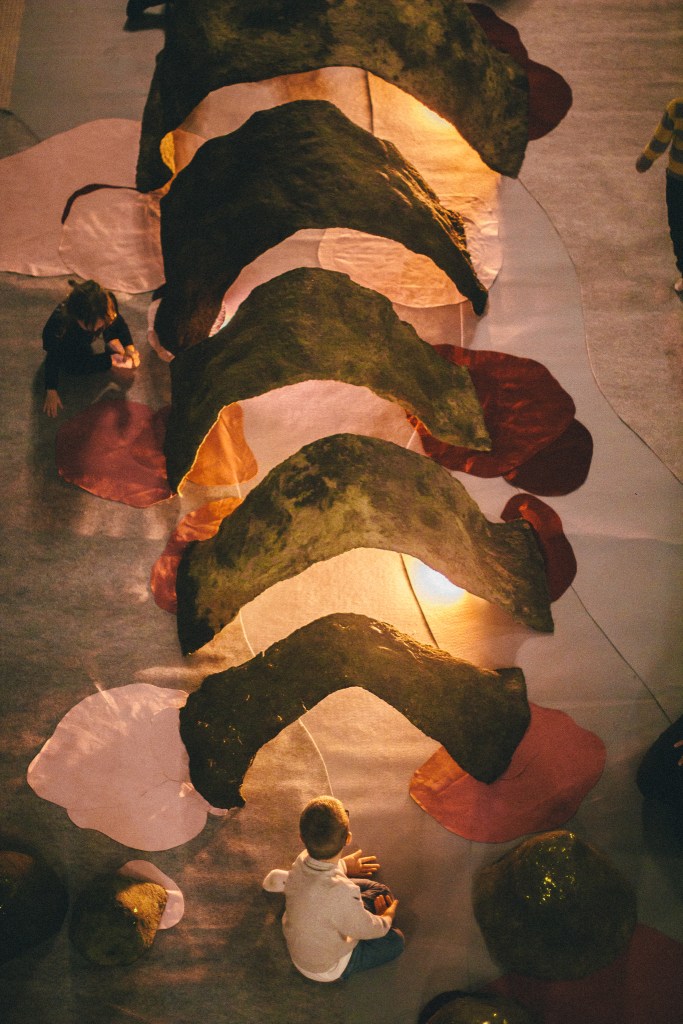 Ici les artistes proposent aux enfants d’expérimenter l’idée d’un refuge, d’une galerie à taille réelle comme un passage qui les mènent vers le cœur de l’installation. Là se trouvent de petits refuges impossible à visiter mais dont les voix semblent évoquer toute la vie que recèle ce type d’habitat.